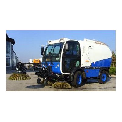 Replaceable sweeping superstructure in stainless steel / aluminium version. Technological area with fan in front part of superstructure. Drive of fan hydraulically from force hydraulics of chassis. High tipping into container of height 1500 mm. Head-on carried sweeping aggregate consists from two plate brushes and suction pipe. Rear suction hose for sucking of loose material etc. Quick replacement for other communal superstructures – spreader, sprinkling machine, mower etc..