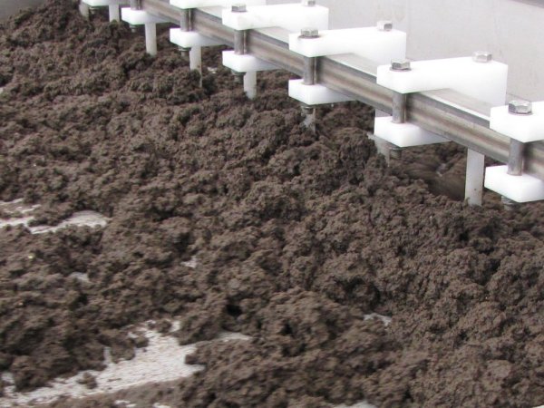 Dilute sludge (typically 0.5% to 1.0%) is introduced at the feed end of a horizontal filter belt. As the slurry makes its way down the moving belt free water drains through the porous belt. The solids are continuously turned, encouraging the drainage of more water. K-S`s exclusive Roto-Kone® High-Rate Drainage System actually holds back the solids while causing constant movement throughout the entire sludge blanket allowing optimal drainage of free water. Sludge is discharged at the end of the horizontal filter belt as a pumpable thickened sludge.