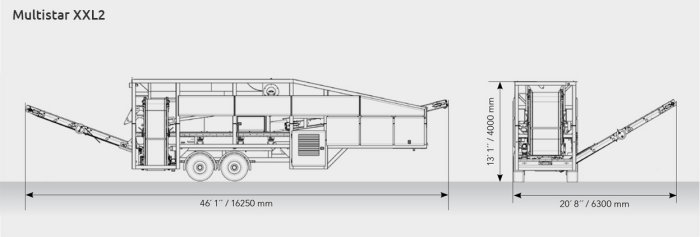 Coarse screen L x W (mm) / area (m²): 23‘ x 5‘3“ / 118 ft2 | 7000x1600 mm / 11,2 m²