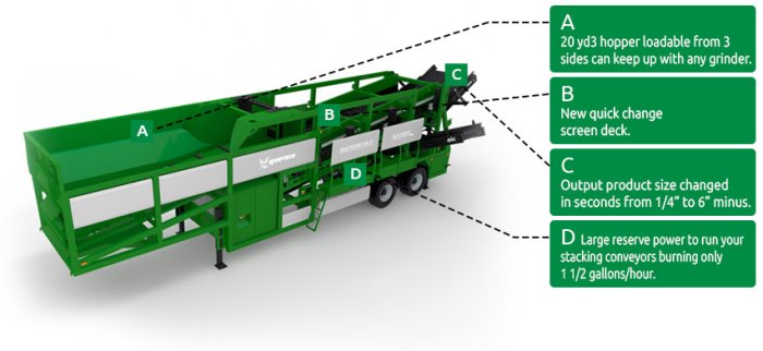 The Multistar XXL-2 is designed as a pure 2-fraction star screen and gives high performance, with unmatched throughput. The XXL-2 is purpose built to keep up with the high throughput of large grinders in the mulch market. This one step process increases output and lowers production costs. The Multistar XXL-2 will produce your bulk ready products faster, cleaner and cheaper.