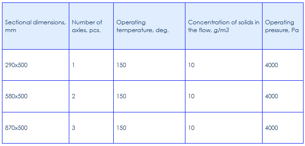 Dampers size, nominal bore and cross-section are selected according to the size and shape of aspiration system gas ducts.