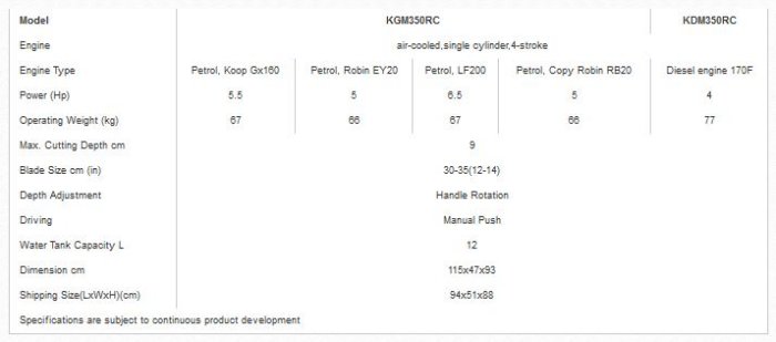 Koop`s floor saws are designed for strength, durability and performance. Whether cutting concrete or asphalt, the reinforced steel box frame design adds strength necessary to reduce vibrations while sawing. Minimizing vibrations enhances the performance of the blade and extends the life of the saw.