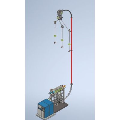 During operation, the ball rain system uses an air flow to transport soft iron balls up to a maximum diameter of 8.0 mm to the boiler roof and from there they are guided through the tube bundles of the boiler pass. Below the pass funnel, the resulting ash/ball mixture is then separated again in a sieve drum and the balls are fed back into the cleaning cycle.