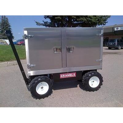 Don`t let the small size fool you. This cart can carry up to 2.000 lbs. It has a foot print of 24 by 56 inches, so it can fit through a man door or in a passenger elevator. Easy to use variable speed twist grip throttle. Powerful worm gear drive acts like a parking brake when you are not moving the cart. Keyed on and off for security. Custom lockable cabinets with adjustable shelves and LED lights. This cart can serve whatever need you have. Our customers include, hospitals, IT groups, housekeeping, maintenance departments, trade show displays and advertising kiosks and on and on... We custom make cabinets for these carts, so just let us know what you need.