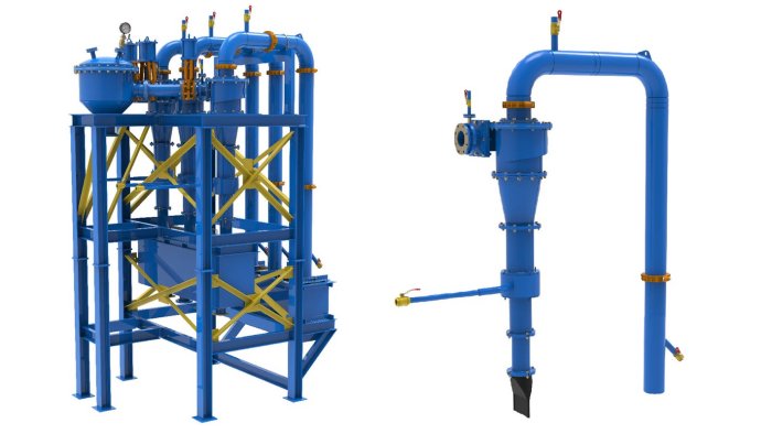 Cyclones with the CycloStack attachment can be used alone, on a manifold with multiple cyclones or in combination with screens, screw classifiers, hydro-separators/hydrosizers or gravity settlers to classify and separate a wide variety of sand and gravel products.