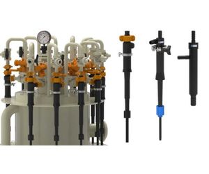 We offer a complete line of KREBS Urethane Hydrocyclones ranging in size from 13 mm to 254 mm (.5-in to 15-in) in diameter. Separation d50`s as fine as 3 microns are possible, with flow rates per cyclone ranging from 2.27 litres per minute (.6 gpm) to 1,136 litres per minute (300 gpm and higher. We can combine multiple units into a manifold arrangement for unlimited capacities.
