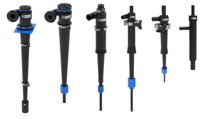 Generally appropriate only for processing of fine solids that do not readily segregate in the pipe. Benefits include lower cost and a geometry that typically connects more easily to plant piping. Typical applications include, removal of fine solids in chemical and water treatment processes.