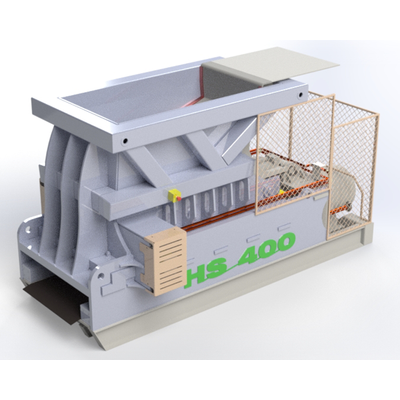 The HS 400 horizontal shear is designed to easily shear ferrous and non-ferrous light and medium collection materials such as round bars, pipes, beams, etc. The difference between the HS 400 and the other shears is the final result: the output material is cut into extremely small pieces (300x300x300), due two lateral pressers that compress the material before shearing, thus increasing its valorisation. The simplicity of use, easy maintenance, thanks to the power-pack in a separate unit, and the low operating costs make it an equipment with an excellent cost /productivity ratio.