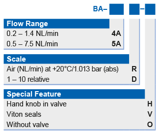Flow range air, 1.013 bar(a), 20°C: