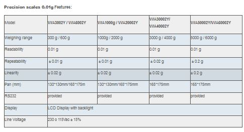 Interface: Rs232C (connect with Printer or PC). LCD With Backlight. More functions about precision balance scale: Counting, Full Range Tare, Over-Load Protection, Zero Tracking, Automatic. Turn-Off, Under Weighing, Low Power Indicator. Value stable time: 2 s. Power: 100-240V/ 50HZ-60HZ.