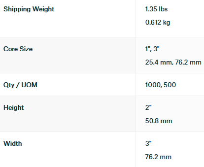 - Core: 1″ or 3″ / 25mm or 76mm