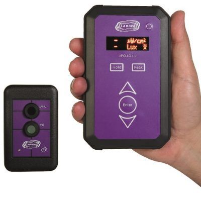 Apollo 2.0 dual UV and white light meter is an instrument for accurate measurement of UV irradiation and visible illuminance. It is wireless system and consists of one reader unit and one wireless sensor unit. It comes calibrated from an ISO/IEC 17025 calibration laboratory.