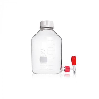 DURAN® Aspirator Bottle GLS 80®, with GLS 80® screw cap (PBT, white) and GL 32 bottom stopcock (glass, PTFE), 5000 mL.