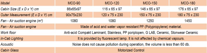 Special requests : - Production of special sizes and different features, - Dashboard controlled gas, flammable gas and water fittings for use in the aspiration cabinet can be placed according to the user's request. - Automatic onand off windshield - Material cabinet that can be used with the device.