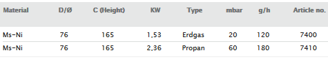 Air regulation. Pilot flame. Max. 1300°C.