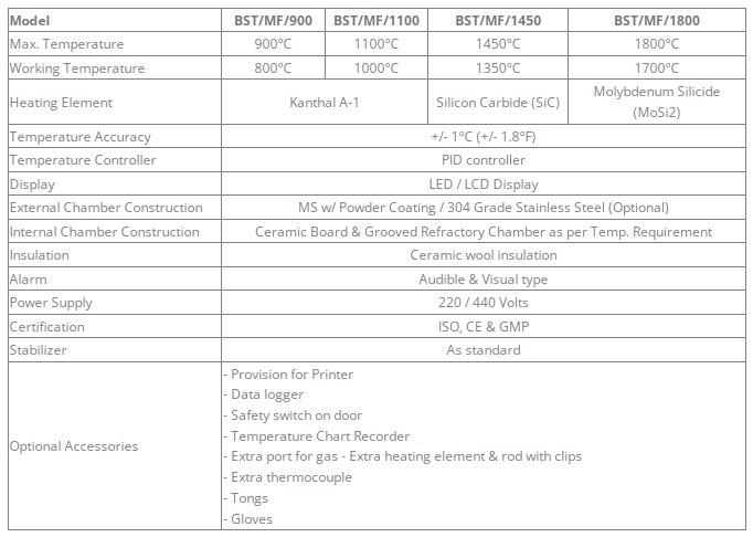 In order to keep the record for processing, these muffle furnaces can be optionally fitted with Digital Data Logger, Printer and Temperature Chart Recorder.