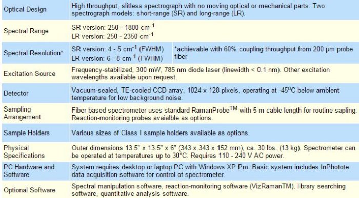 Little sample preparation is required when using the RamanProbe for routine analysis. The VERAX can be equipped with any of InPhotonics` immersible probes for real-time monitoring of chemical processes. Permanently-mounted optics ensure constant calibration and stability. The system requires minimal maintenance and consumable parts can be exchanged by the user. The VERAX can also be operated simultaneously with the ReactionViewTM fiber-optic FT-IR system as a comprehensive process development system.