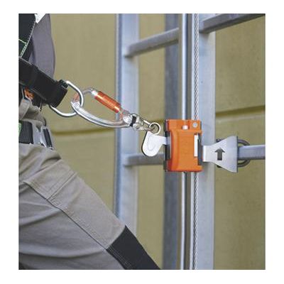 - Cable sleeve integrated shock-absorbing element – Provides a “dual shock-absorbing system” to further reduce fall forces. Protects the system and ladder from damage