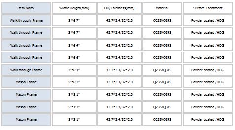 Gainford equipment Produces All American Scaffolding Frames by S355(Q345) Steel Grade Material to Meet up ASTM Scaffolding Standard.