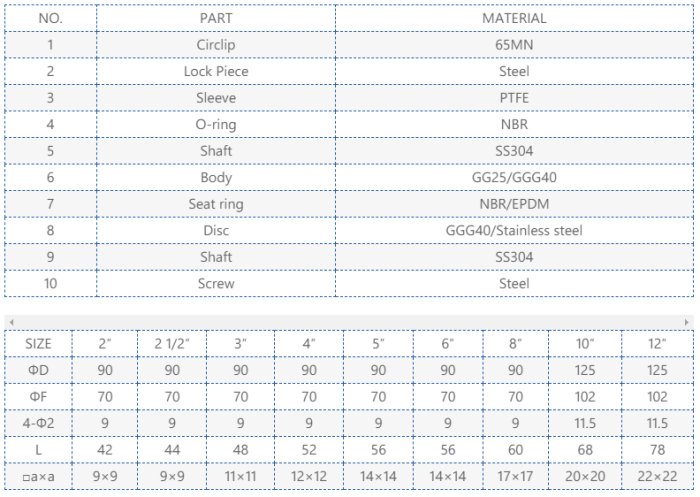 - Disc: Stainless steel 304 (CF8).