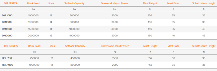 Swing Lift masts and substructures with hook load capacity from 340 to 907 metric tons (750,000 - 2,000,000 lbs).