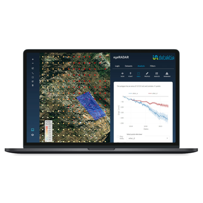 Detektia is formed by a team of experts in DInSAR technology and data science. Detektia develops models that allow estimating the probability of a landslide event in a given area by relating variables such as the acceleration of a slope’s movement (measured with DInSAR) with accumulated precipitation, soil moisture, geology, slope, terrain curvature, land use…