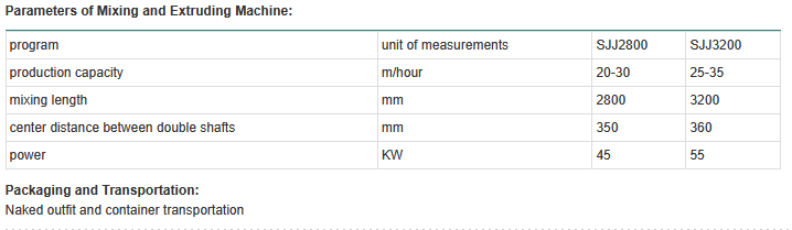 Double shaft mixer and extruding machine is suitable for brick making raw material that has already be treated by the process of batching and crushing. The mixing and extruding machine processes the raw material by water distribution, mixing, homogenizing, squeezing, exhausting and maiming so that the capacity of unit volume of raw material can significantly be improved. The double shaft mixer and extruding machine has excellent property. It is one of the key equipments in clay hollow brick production line. The main components are clutch, reducer, twin-shaft extruding part, mud cylinder and mud nozzle.