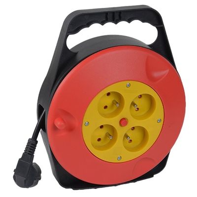 This cable reel is available in 3G1.0mm², 3G1.5mm² and 3G2.5mm². Cable color and length can be customized with ABS plastic housing with overload protection. The multi-plug design allows simultaneous use of multiple appliances for industrial work, even in harsh environments, as well as for gardening tools and household appliances such as heaters, fans, etc. The retractable design allows for easy storage, and the crank handle conceals the movable design for easy lifting and releasing of the cable.