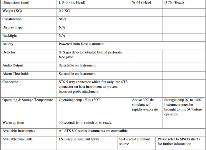 Instrument response may be affected by environmental conditions such as excessive heat and humidity and by air flow, strong air conditioning units and outside exercises may need to be considered to ensure the simulant is identifiable by a trainee.