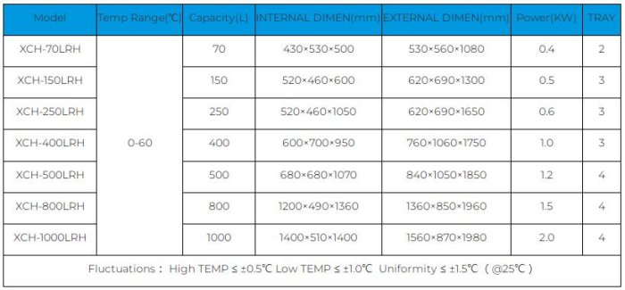 XCH-1000LRH Biochemical Incubator & Cooling Incubator uses the latest air duct system to achieve the best level of uniformity of temperature and humidity in different positions inside the chamber. The bod cooling incubator Polyurethane foam technology is adopted, good insulation, energy saving. Provides precise temperature control for reliable results in pharmaceutical, industrial testing, food, cosmetics, and microbiological research.