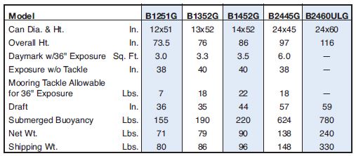 Standard Cans: Widely used by the U.S. Corps of Engineers. Concrete ballast encased in ABS. Ballast attached by a galvanized steel pipe.