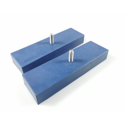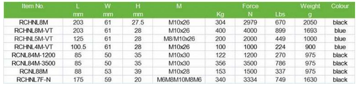 Another best seller heavy duty rubber coated support magnet is RCHNLxxM-VT. This series is a U profile channel magnet assembly fully encapsulated by a layer of blue EPDM rubber coating, For which with a stainless-steel threaded stem on top. They are available in three sizes, with vertical holding force ranging from 1000N, 2000N to 4000N. More importantly, RCHNLxxM-VT have very good shear force performance and are perfect to hang heavy objects in shear direction.