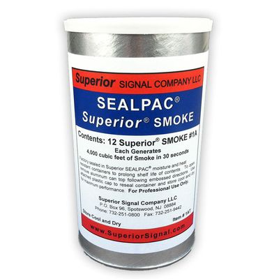 The Large 1A SealPac includes 12 Superior® 1A Smoke Candles in a resealable container. SealPac containers are shipped air tight, and include a desiccant pack to protect your Smoke Candles from exceptionally hot and humid climates. SealPacs are perfect for individuals using Smoke Candles in hot climates or who intend to store Smoke Candles for extended periods. The Superior® Smoke #1A generates 4000 cubic feet of smoke in thirty seconds. Superior® Classic Smoke Candles quickly and efficiently produce a dense white smoke ideal for a variety of applications. Disposable and simple to use, no external power or heat source is required.