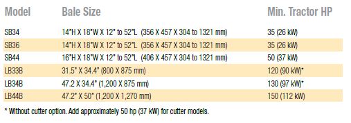 - Precutter (Available on LB33 and LB34, the precutter reduces the length of crop material, making bales better suited for use in TMR mixers or for young livestock.