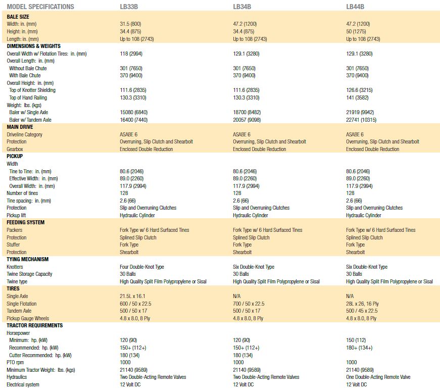 - Large capacity twine boxes hold plenty of twine for more time in the field when conditions are right. Capacity is 24 balls on the LB44; 30 balls on the LB34, and 20 balls on the LB33.
