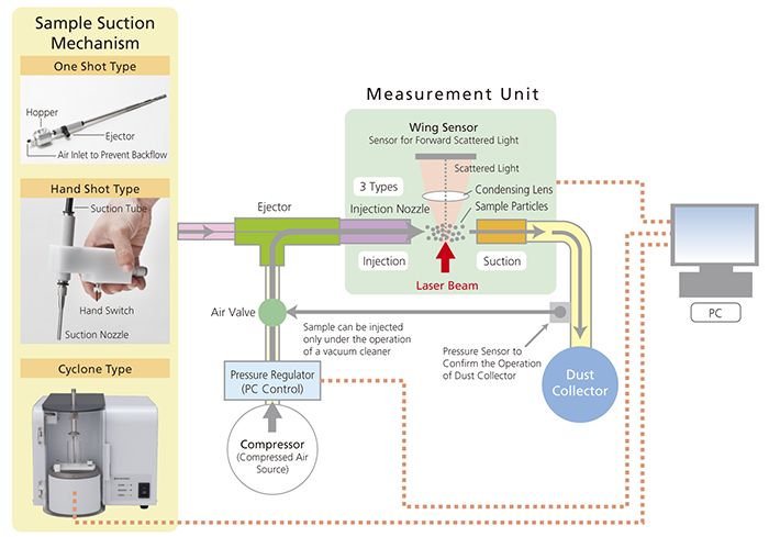 - Sample suction types: Cyclone type / One shot type / Hand shot type
