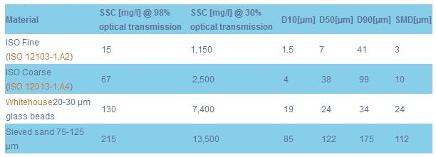 • Range: 15 – 13,500 mg l-1 for standard 3.2 mm optical path. NOTE: THE ACTUAL CONCENTRATION RANGE IS VERY HEAVILY GRAIN-SIZE DEPENDENT.