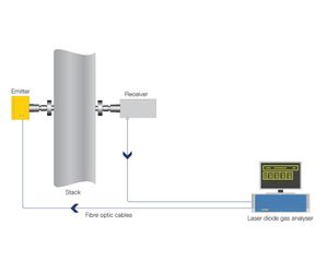 As with DOAS systems, emitters/receivers and analysers are linked by optical fibres. This makes it possible to have the emitter/receiver outdoors in harsh environments, while the more sensitive analyser can be indoors. Two types of fibre are used: OF005/010 which carries the laser light from the analyser to the emitter, and CF120 which carries the detector signals in digitised form from the receiver back to the analyser.