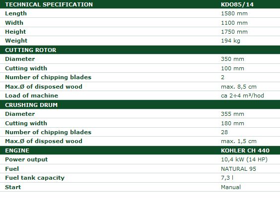 The chipper LS 65/CH can be characterized by high power output and simple design. It is powered by the Kohler engine. Transmission of power from the engine to the chipping device is based on V-belt gearing. This chipper is equipped with two cutting blades and one fixed counter blade. It is very easy to check or to replace the blades: just after swinging the loading chute away. Loading of materials to be chipped between the loading rolls is realised by gravity only, i.e. there is no other mechanism required. The chipper is also ready for chips collecting into bags made from air-permeable fabric and fitted on its discharge duct. Light-weight construction and larger travelling wheels make any machine handling very easy.