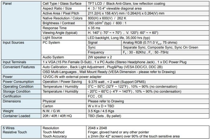 Modularize mechanical design provides flexible product configuration and easy maintenance. Optional build-in touch screen for interactive application. Available with auto-brightness sensor offers application in day and night. VGA connector with optional AV,SV,AV-Looping Complete custom design/solution for OEM customers.