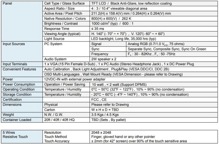 Modularize mechanical design provides flexible product configuration and easy maintenance, Optional build-in touch screen for interactive application, Available with auto-brightness sensor offers application in day and night, VGA connector with optional AV,SV,AV-Looping, Complete custom design/solution for OEM customers.