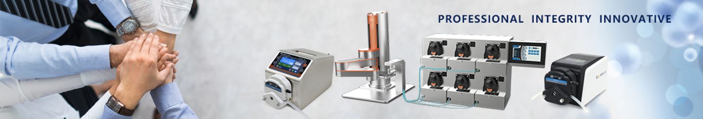 BT100F Intelligent dispensing peristaltic pump provides flow range from 0.0001 to 720 mL/min with variable pump heads and tubings. 4.3-inch color LCD display, intuitive image Touch screen with key operation, convenient and fast LF-Touch-OS software system, efficient and stable, with good human-computer interaction mode, convenient product customization and upgrade Four working modes, flow rate, time dispensing, volume dispensing, programming dispensing (cycle) Five sets of dispensing parameters for volume and time dispensing pre-storage Programming mode supports 30 different quantitative parameter settings for complex control processes Reversible direction, start/stop, full speed, suction function, timed start-stop Accurate flow control and display, microstep algorithm to ensure the dispensing accuracy of different settings