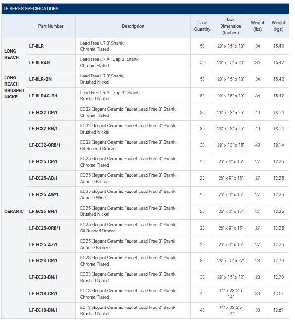 Hydronix LF Series Lead Free Faucets