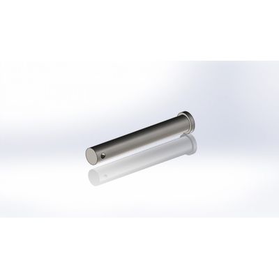 Often referred to as a top hat pin, we refer to this pin as type “A”. They have one hole at the end for a split pin/cotter pin and a head which is larger than the leaf chain pin diameter. The manufacturing process can be expensive as they require plunge grinding. They can only be removed from one side, can be useful where lateral space is limited and where concerns exist that the pin will snag on other components.