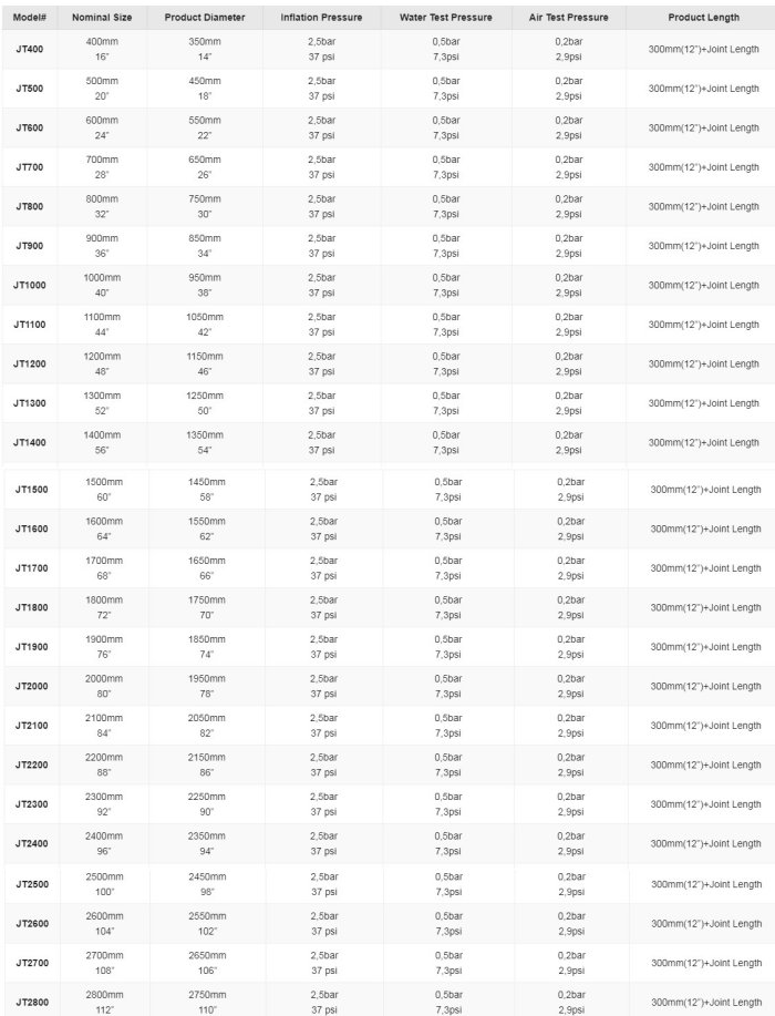 Joint test plugs are made from SBR+NR mixed rubber, nylon cord, Kevlar cord and strong fabrics. Steel core and four wheels.