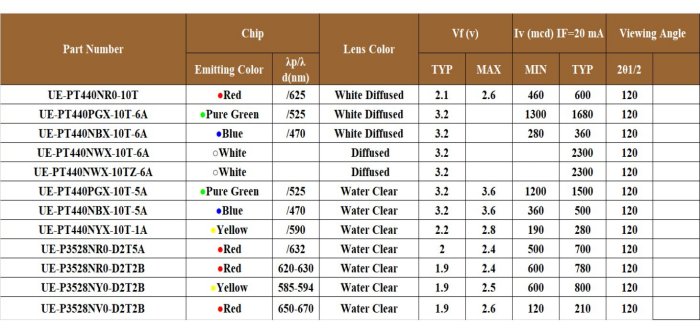 UC&GN - Model 3528 Series -LED Component - PLCC