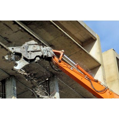 The Multi-Quick Processor for excavators with 18t-25t operating weight is the ideal tool for demolition operations. Depending on the type of mounted jaws the tool can be used for primary and secondary demolition. One attachment, different applications. There are different types of jaws available for easy mounting on the processor: Combi (C)-, pulveriser (P)-, steel (S)-, demolition (D)-, and tank (T)-jaws. Jaws and processors are available individually. Hereby all wear parts such as teeth and cutting blades are exchangeable on site.