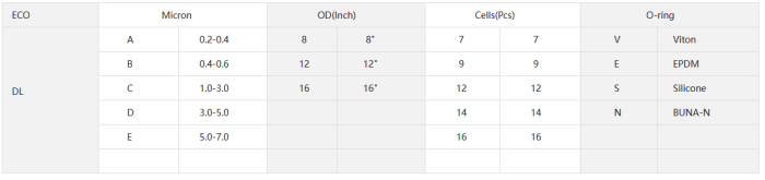 - EG: A 0.4-0.6um filters with OD12",16 Cells and Viton O-ring