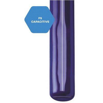 The FS-type level measurement probe uses the capacitive method. The Pfaudler FS sensor serves continuous level detection, preferably in storage vessels. The electrode tape has been fused into the glass in parallel to the longitudinal axis of the probe carrier. The effective length covers across the entire length of the probe carrier (tube or baffle). A fused-in electrode strip forms a capacitor with the steel tube. If the probe comes into contact with product, instead of air, in the vicinity of the electrode, the capacitance changes.