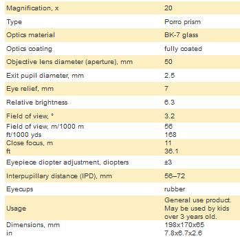 Levenhuk Atom 20x50 Binoculars have a classic design based on Porro prisms. The optics are made of fully coated BK-7 borosilicate glass, which allows the observer to enjoy high-quality observations. Levenhuk Atom 20x50 Binoculars create bright and vivid views with lifelike colors.